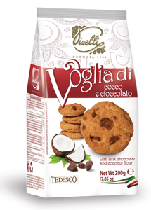 "Coconut and milk chocolate" biscuits, made in Italy Piselli products ready for wholesale business to business Apply now for Distribution |