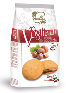 "Frollini filled with hazelnut cream" our Piselli hazelnut cookies are very soft and almost cake-like ideal for energy snack Apply for Distribution |