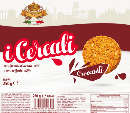 NUTRITION INFORMATION OF THE CRUNCHY CEREALS BISCUITS FONTANA |