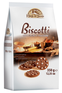 "Cacao and hazelnut biscuit 350g" Borgo del Biscotto brand, an Italian perfect snack for home breakfast and ideal for good distribution deals Apply for Distribution |