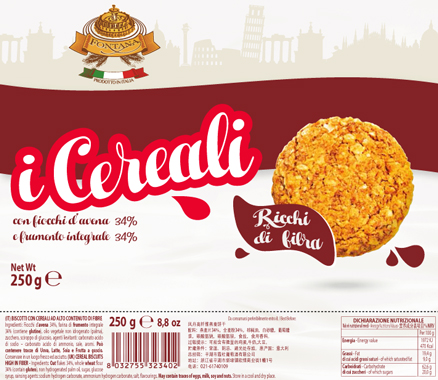 NUTRITION INFORMATION OF THE HIGH FIBERS CEREALS DIET BISCUITS FONTANA |