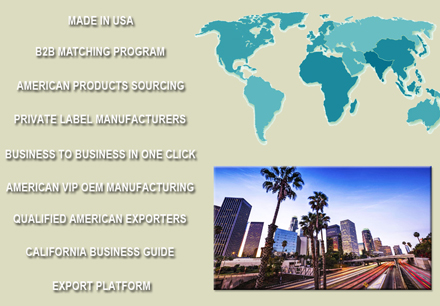 California Business Guide is a professional American export platform directory created to support the worldwide industrial buyers, distributors, wholesalers and international manufacturers to buy from "made in USA" exporters, industrial manufacturing companies, private label production suppliers and business to business vendors. |