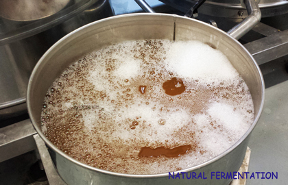 CERVEZA CON FERMENTACION Y RE-FERMENTACION NATURAL La primera fermentacion (alta temperatura) y segunda fermentacion en botella son procesos naturales las moleculas de CO2 no disturbaran nunca al paladar cuando se beve o durante la sucesiva digestion. La segunda fermentacion (o re-fermentacion) se efectua metiendo el mosto de cerveza formado durante la produccion (contene azucar) en la botella antes de la tapa reaccionando con la levadura, a temperatura controlada se crea una carbonacion natural |